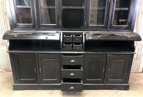 Curved Black Kitchen Hutch Cabinet, Kitchen Storage, Wood Pantry Cupboard, A