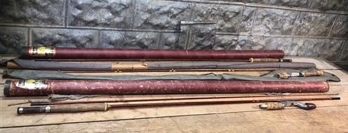 Cork handles as well as rods have scuffs and marks from handling. Heddon label on the tubes, there is a guide or 2 missing. Review photos to get the best idea on the condition. Some are marked Heddon Pal.