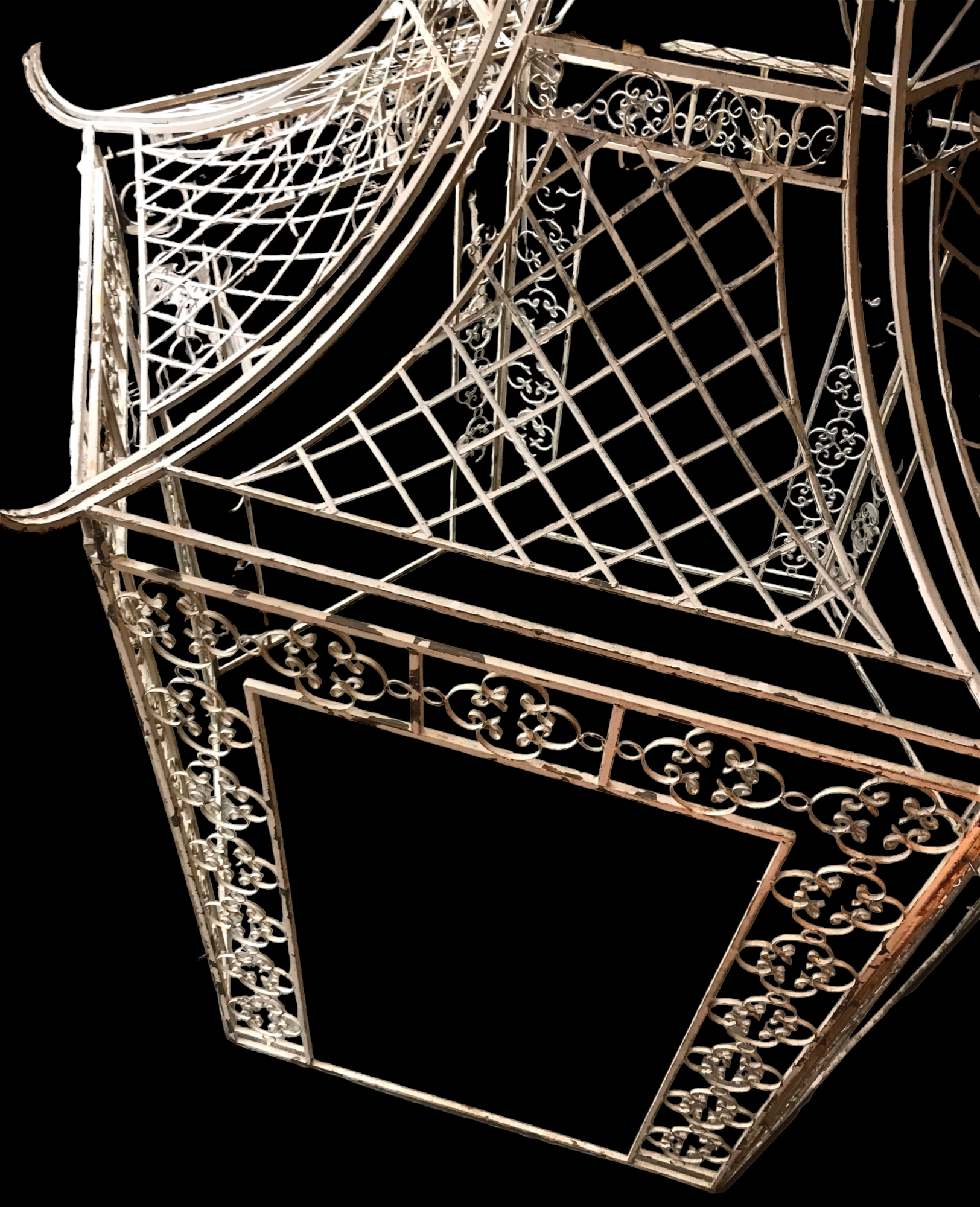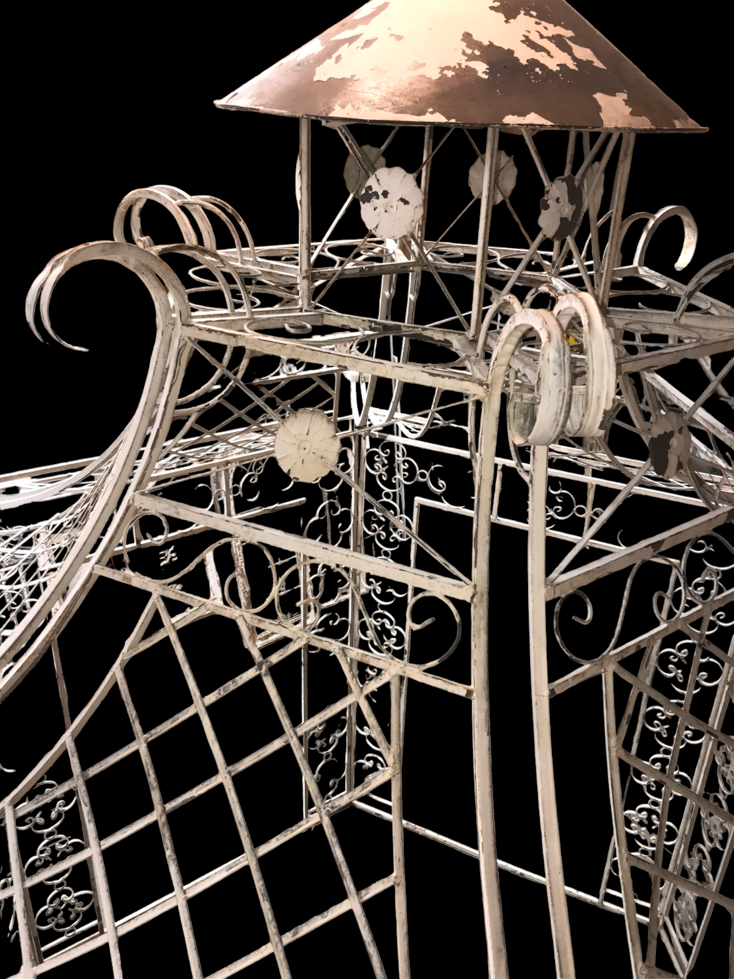 Absolutely Charming Garden Gazebo Pergola: an intricate design that brings a touch of elegance and rustic charm to any setting. Standing at an impressive height of approximately 13 feet, with dimensions of 11 feet in length and 9 feet 8 inches in width, this gazebo pergola is a true statement piece that will captivate the eyes and hearts of all who encounter it. The garden gazebo features six side panels and six upper curved panels for the roof, culminating in a graceful cupola atop the structure. Each side panel measures 65" wide and 89" tall. Each opening is 42" wide and 77" To ensure stability and durability, the package includes pins that securely hold the various components together. Crafted to be both aesthetically pleasing and functional, this ornate metal pergola is suitable for both indoor and outdoor use. For those who choose to place it outdoors, a coat of polyurethane is recommended to provide an extra layer of protection against the elements, ensuring that its beauty withstands the test of time.