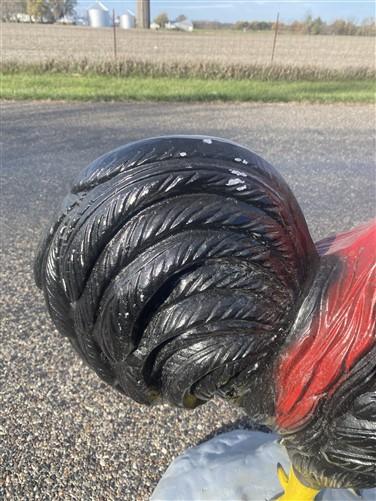 Standing tall at approximately 44 inches from top to bottom, 11 inches side to side, and 54 inches from front to back, this imposing rooster will undoubtedly capture attention.