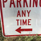 No Parking Any Time Street Sign, 24x18 Vintage Metal Road Sign, Garage Art, M
