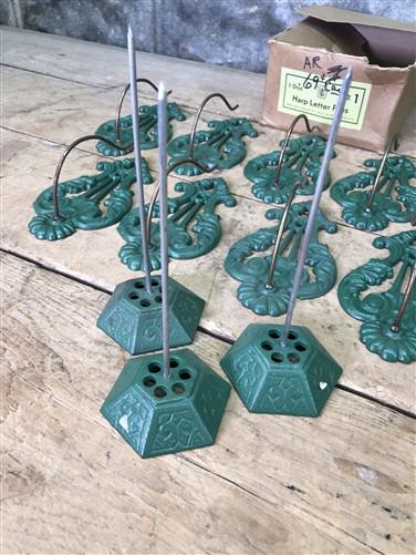 Offered here is a lot of New Old Stock metal paper spikes, perfect for organizing receipts, bills, or notes. These vintage "harp" style receipt holders can be used as wall-mounted spikes or upright desktop spikes.