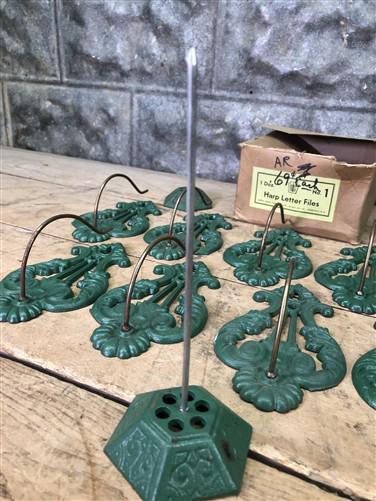 NOS Harp Letter Files, Lot Metal Paper Spikes, Wall Mount Receipt Bill Holder