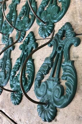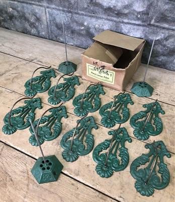 Each piece is stamped "Made in U.S.A." on the bottom. The original box is marked Grey Iron Casting Co., Mount Joy, PA. The box shows expected wear from storage, but the label remains intact. All 13 spikes (10 wall mount and 3 upright) are being offered together in this one lot. These are authentic vintage organizers-sturdy, functional, and collectible. Perfect for home offices, antique desk displays, or retro business décor.