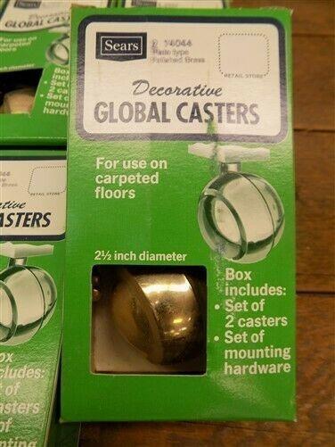 NOS Sears Decorative Global Casters Mounting Hardware Plated Polished Brass b, Brass Caster, Furniture Wheels, Furniture Caster