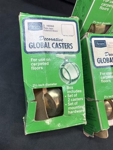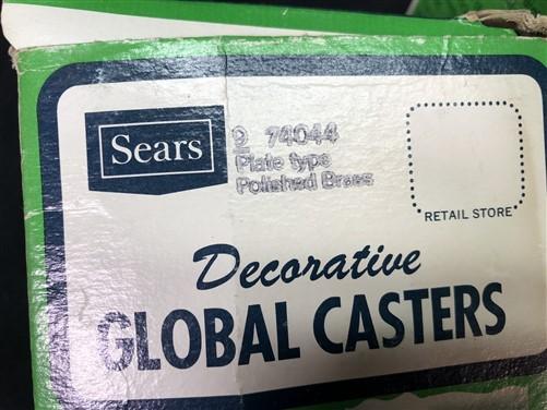 NOS Sears Decorative Global Casters Mounting Hardware Plated Polished Brass C