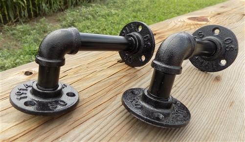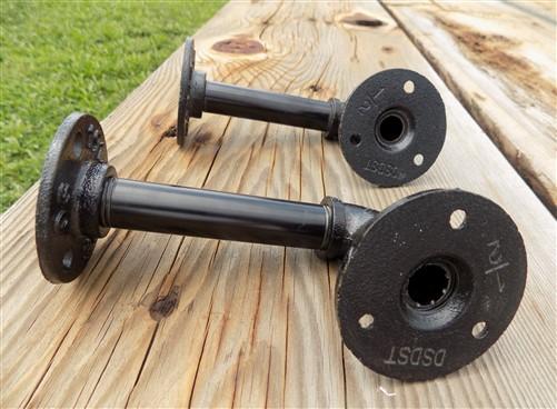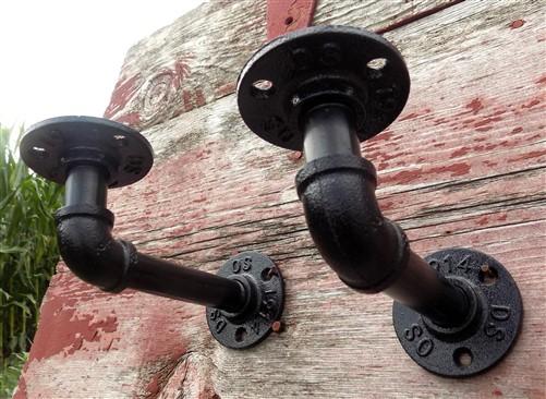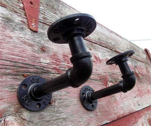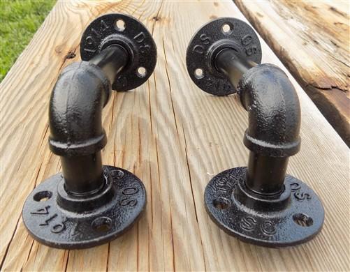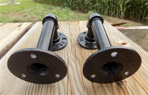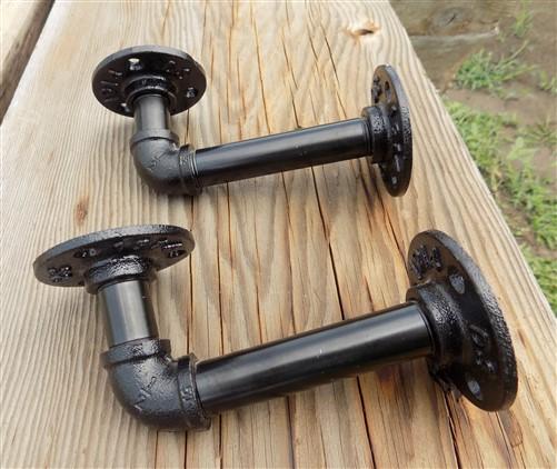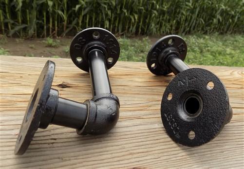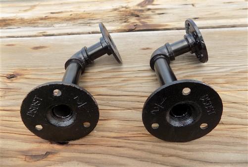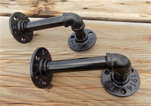Pair Pipe Brackets, Floating Shelf Mantel Hardware, Rustic Industrial Decor