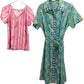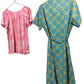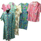 A group of 6 retro moomoo type dresses, house dresses and blouses. Bright and colorful, lots of florals. No size tags found, most are approximately 22" side to side at the underarm seams.