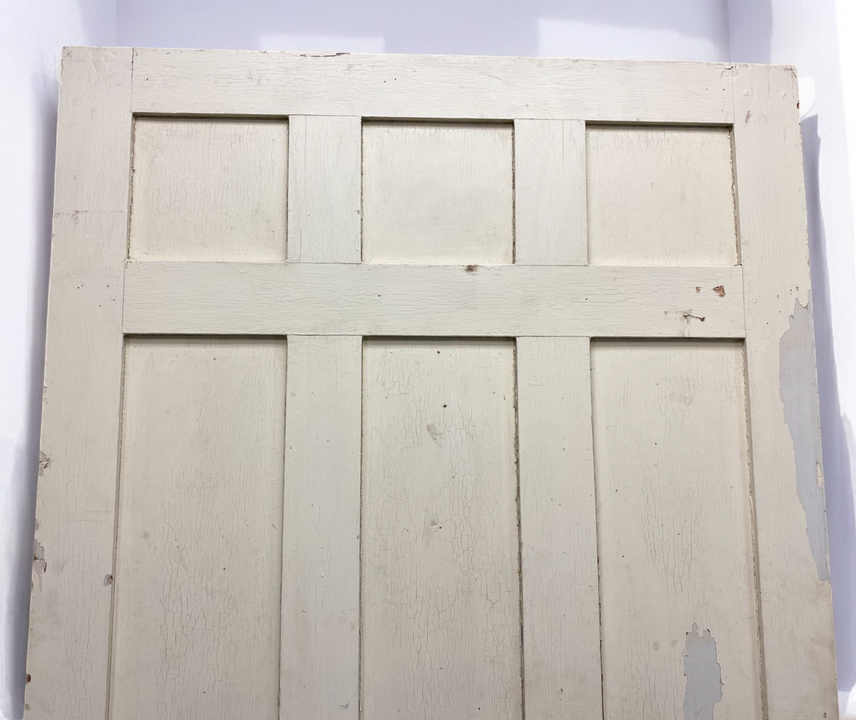 This is a huge single door which can be used as a swinging door or sliding door. This door is structurally in good condition considering its age. The nicks and scratches give it a lot of character. It is a great accent piece for your home or office.