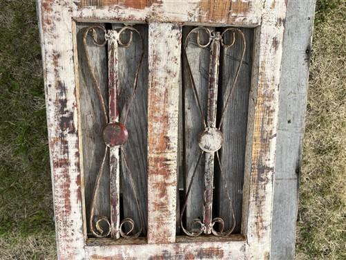 White Rectangular Metal Wood Window, Distressed Architectural Rustic Decor,