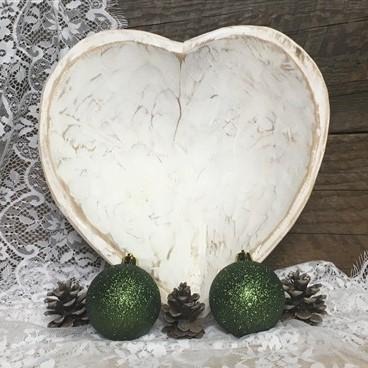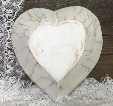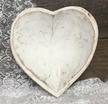 White Wood Heart Bread Dough Bowl, Rustic French Country Carved Centerpiece V